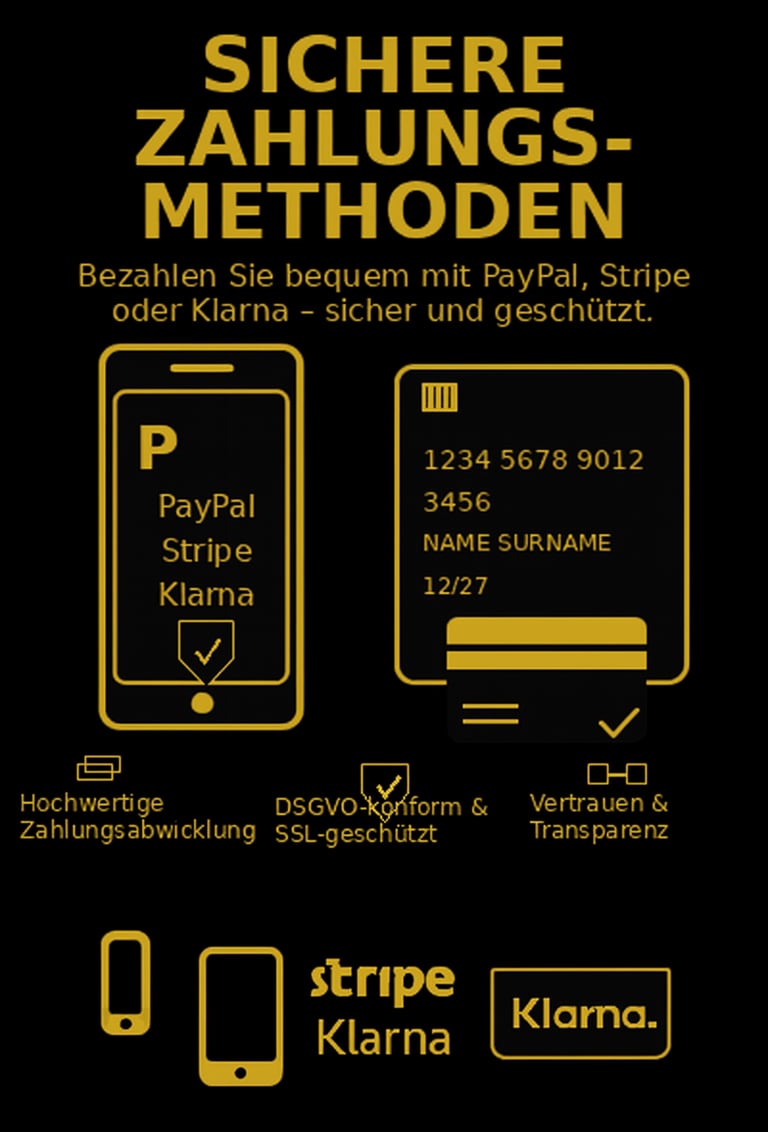 Bezahlen Sie bequem mit PayPal, Stripe oder Klarna – sicher und geschützt.